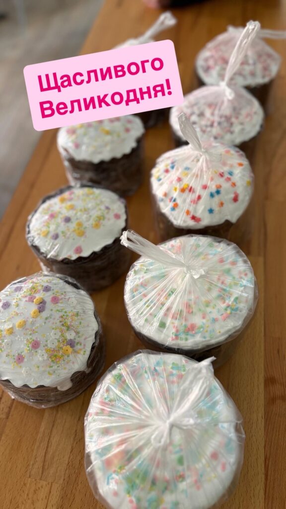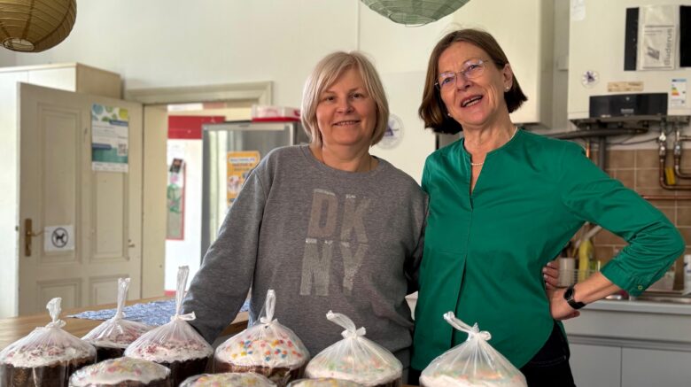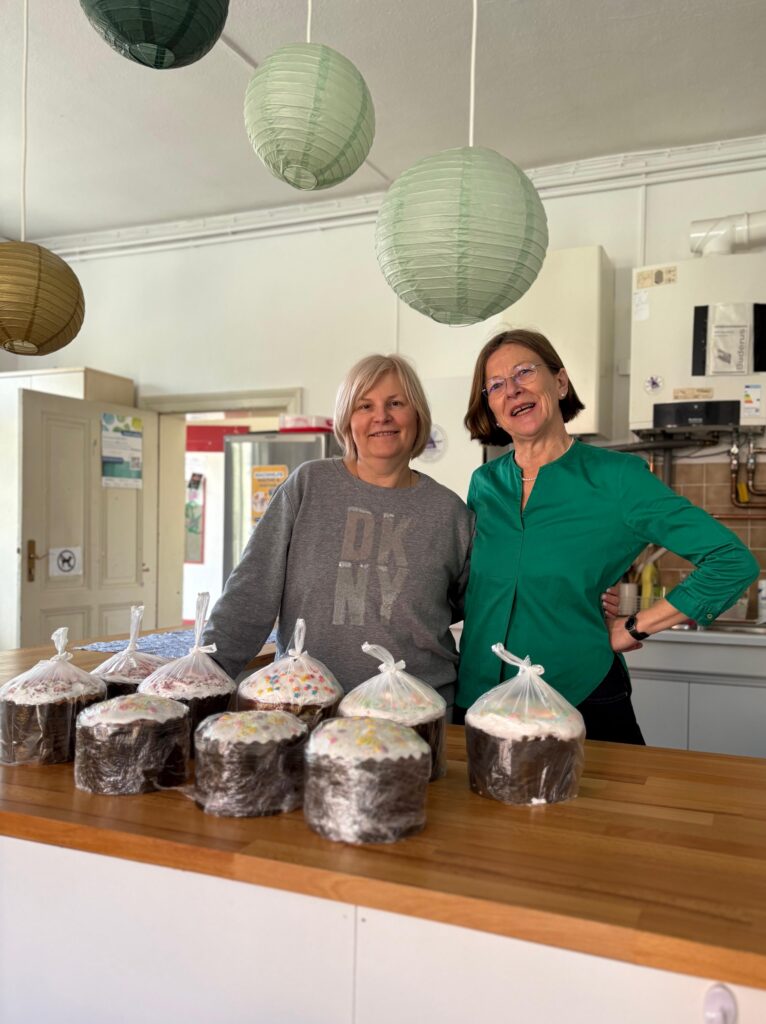 Heute im Begegnungscafé Kleinmachnow: Verkauf von Paska – von Mitarbeiterinnen liebevoll gebackenes ukrainisches Osterbrot.